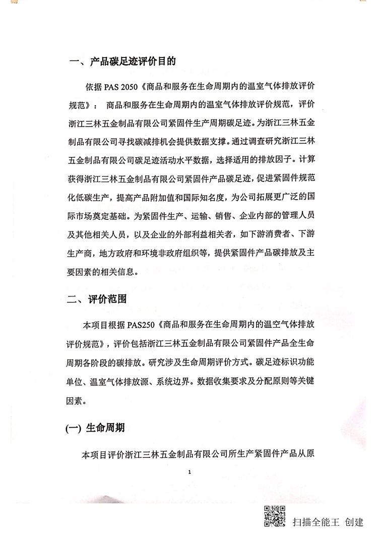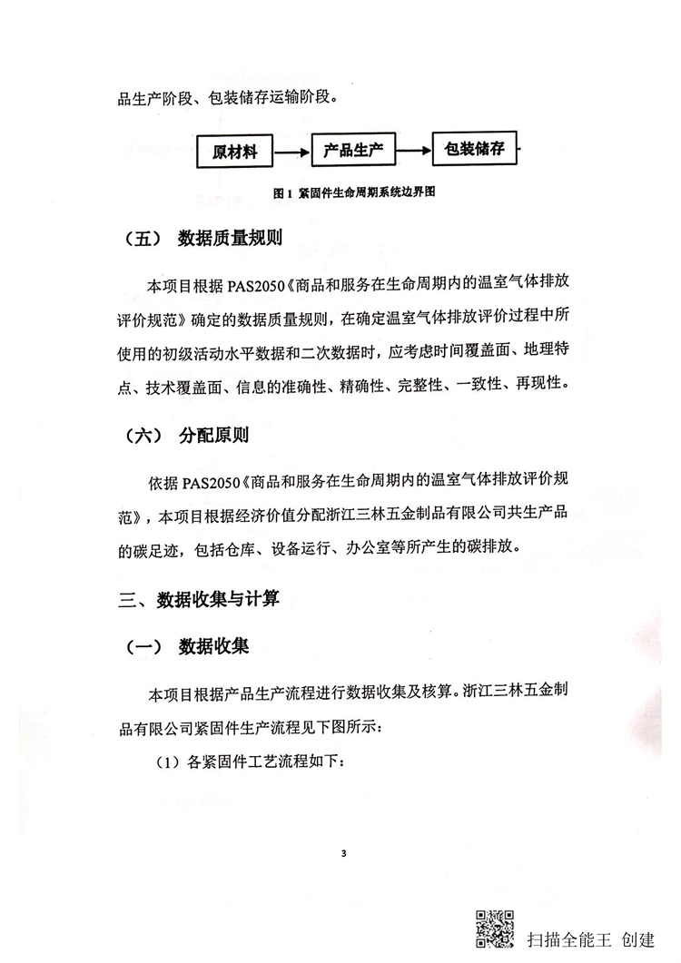 浙江三林五金制品有限公司紧固件碳足迹报告