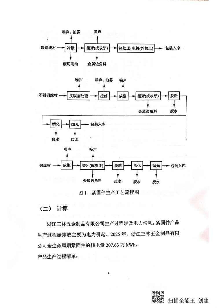 浙江三林五金制品有限公司紧固件碳足迹报告